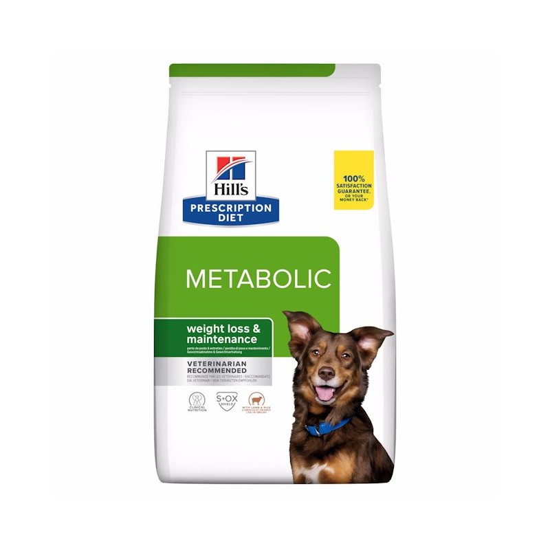 Hill's PRESCRIPTION DIET Metabolic alimento per cani con agnello e riso è una alimento dietetico completo per la riduzione del peso corporeo in eccesso ed il mantenimento del peso sano nei cani adulti. Questo alimento ha una bassa densità energetica.