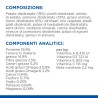 COMPONENTI ANALITICI: Proteine 19,9%, Tenore in materia grassa 14,9%, Fibra grezza 2,5%, Ceneri grezze 5,2%, Acidi grassi Omega-3 0,8%, Acidi grassi Omega-6 3,2%, Calcio 0,84%, Fosforo 0,71%, Sodio 0,25%, Potassio 0,84%, Magnesio 0,09%; per kg: Vitamina A 8.415UI, Vitamina D3 721UI, Vitamina E 802mg, Vitamina C 116mg, Beta-carotene 2,2mg.