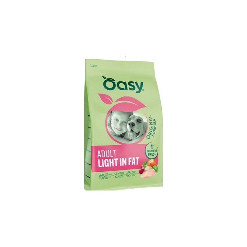 - Controllo del peso Il minor contenuto di grassi* e l'integrazione di L-Carnitina facilitano il raggiungimento e il mantenimento del peso forma del cane. (* Rispetto a Oasy Original Adult Medium/Large Pollo)