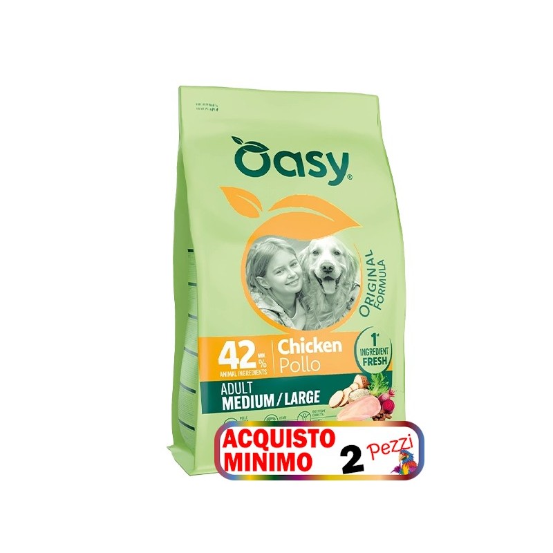 OASY DOG orginal formula MEDIUM/LARGE ADULT POLLO 10KG*acquisto minimo 2 sacchi *sped gratuita*