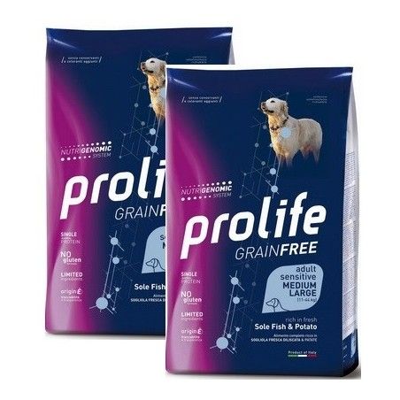 PROLIFE..DOG ADULT SENS. SOLE FISH & POTATO - MEDIUM/LARGE KG. 10 **acquisto minimo 2 sacchi*prezzo riferito alla singola confe