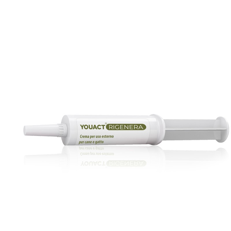 Prima di ongi applicazione pulire e detergere accuratamente la cute con soluzione fisiologica tiepida per eliminare l'eventuale presenza di materiale organico. Applicare un quantitativo idoneo di YOUACT Rigenera per ottenere l'omogenea copertura delle parti da trattare mediante un massaggio delicato. Evitare che l'animale lecchi la parte trattata nei primi 30 minuti dopo l'applicazione.