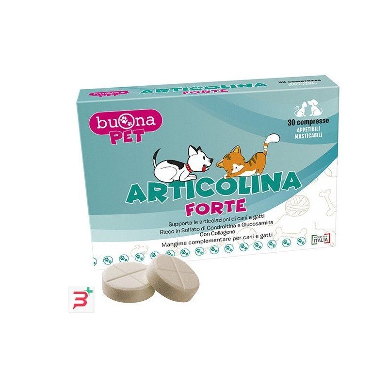 ARTICOLINA FORTE è un mangime complementare per cani e gatti formulato in compresse masticabili ed appetibili con Solfato di condroitina, Glucosamina e Collagene per supportare la normale funzione delle strutture articolari. Contiene inoltre PEA Levagen+®, ad elevata biodisponibilità.