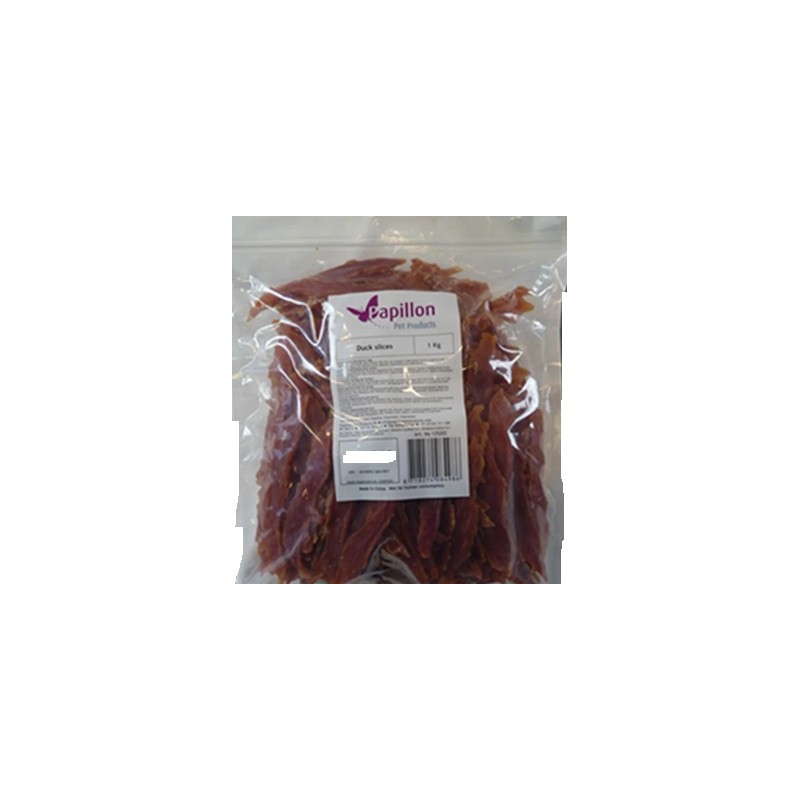Queste gustose strisce all'anatra vi permetteranno di viziare il vostro cane con uno spuntino delizioso e al tempo stesso di fornirgli preziosi nutrienti. Questi snack aromatici sono composti da componenti idonei e naturali. Contengono tantissime proteine della carne e preziosi minerali. A base di filetti di petto di anatra offrono un'irresistibile esperienza di gusto a tutti i cani! Così sono perfetti come ricompensa, spuntino o bocconcino per viziare Fido.