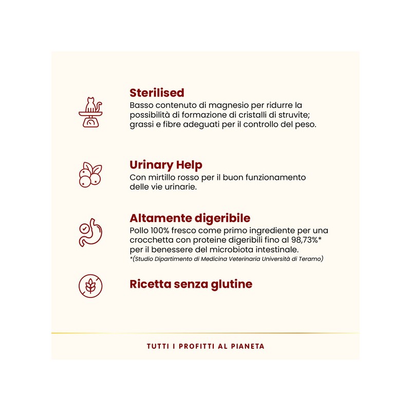 Le crocchette HFC Our Best Sterilised sono preparate con carne o pesce 100% freschi e nutrizionalmente complete per l’alimentazione quotidiana dei gatti adulti e maturi. Our Best perché la nostra crocchetta HFC è preparata con carne o pesce in origine idonei al consumo umano ora alimento per gatti per scelta commerciale, la qualità che scegli per te. La carne o il pesce utilizzati sono freschi al 100% quindi non sono stati sottoposti ad un trattamento termico precedente, come invece accade per le farine e disidratati animali. Subendo quindi un solo processo di cottura si preservano meglio i nutrienti della carne o del pesce per proteine altamente biodisponibili e digeribili. Le crocchette HFC Our Best contribuiscono quindi al normale funzionamento intestinale e forniscono proteine digeribili fino al 98,73%*. La ricetta è senza glutine, con sorgo bianco a basso indice glicemico, HFC Our Best Sterilised è ideale per gatti sterilizzati grazie al basso contenuto di magnesio e la presenza del mirtillo rosso contribuisce al buon funzionamento dellevie urinarie. Crocchette disponibili sia in versione monoproteica che non, senza farine o disidratati di carne o pesce. Almo Nature suggerisce di servire alimenti umidi e secchi ealternare fonti proteiche differenti per assicurare una alimentazione varia.HFC Our Best Sterilised – 3 ricette di crocchette per gatti adulti, sterilizzati e non – disponibile in sacchi da 300g e 1,2 kg.Almo Nature è il brand attivista 100% proprietà della Fondazione Capellino.*Studio del Dipartimento di Medicina Veterinaria, Università di Teramo.