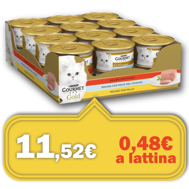 Gourmet gold mousse multipack 24 lattine (pollo, pesce, manzo) a 11,52€ (solo 0,48€ a lattina!). Fino ad esaurimento scorte.