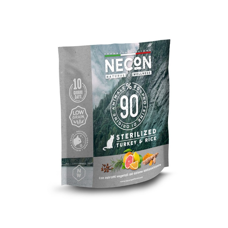 NW Sterilized Turkey & Rice è un alimento Superpremium low grain per gatti sterilizzati con il 25% di tacchino in formula. La proteina di tacchino si caratterizza per essere molto ricca in aminoacidi essenziali (alto valore biologico) molto gustosa e appetibile per il gatto. Essa è anche una fonte di acidi grassi omega 3, importanti per la salute della pelle e del pelo ma al tempo stesso si presenta più magra del pollo. Per migliorare il benessere dei nostri gatti le ricette sono state integrate con l’alga Ascophyllum nodosi (in grado di contrastare la formazione della placca e ridurre l’alitosi) e con un pool di estratti vegetali ad azione antiossidante per contrastare i radicali liberi.