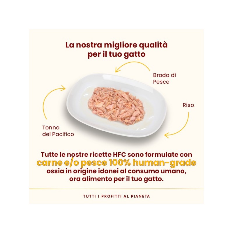 Tonno del Pacifico 55%, brodo di pesce 42%, riso 3%
