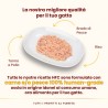 Tonno 40%, pollo 35%, acqua di cottura 24%, riso 1%