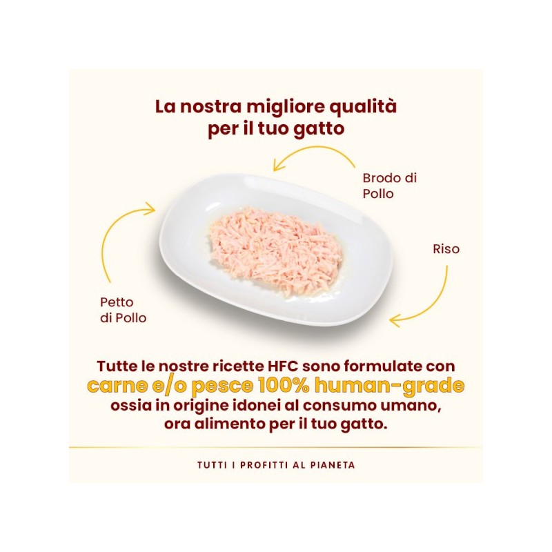 Gamma HFC per gatti Solo carne o pesce 100% HFC, in origine idonei al consumo umano. La massima qualità per il tuo gatto.