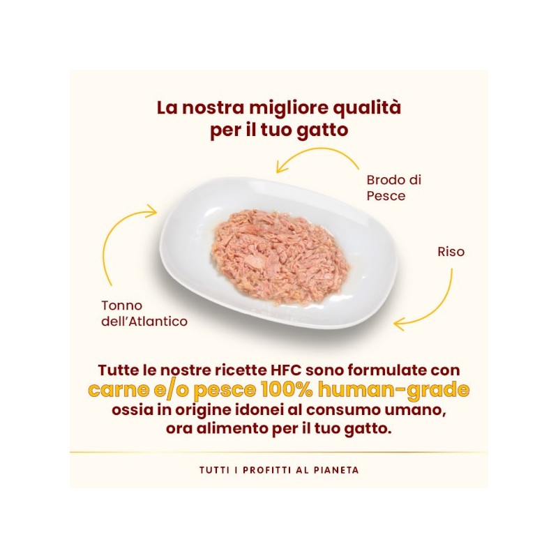 Gamma HFC per gatti Solo carne o pesce 100% HFC, in origine idonei al consumo umano. La massima qualità per il tuo gatto.