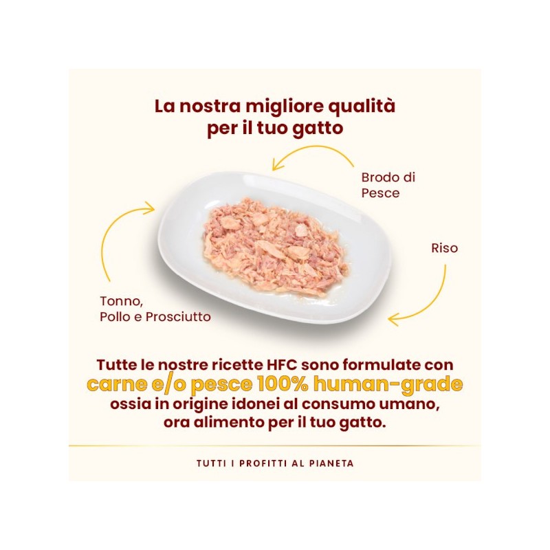 Gamma HFC per gatti Solo carne o pesce 100% HFC, in origine idonei al consumo umano. La massima qualità per il tuo gatto.