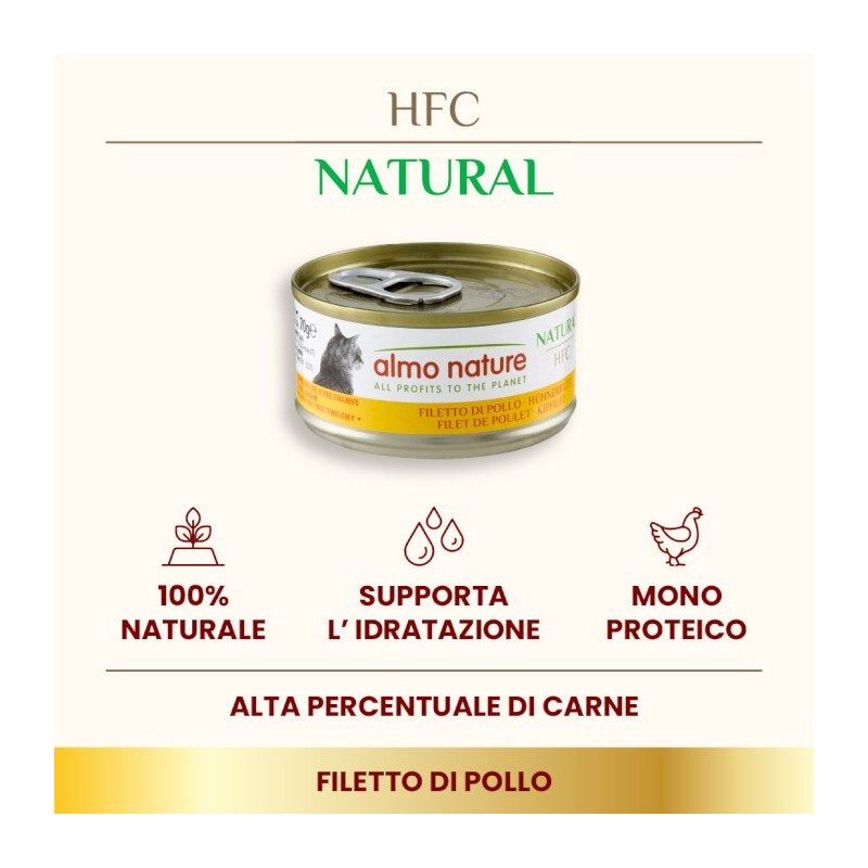 Almo Nature HFC Natural, Alimento Umido per Gatti - Filetto di Pollo - Lattina da 70 g