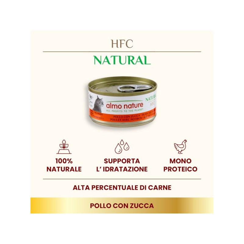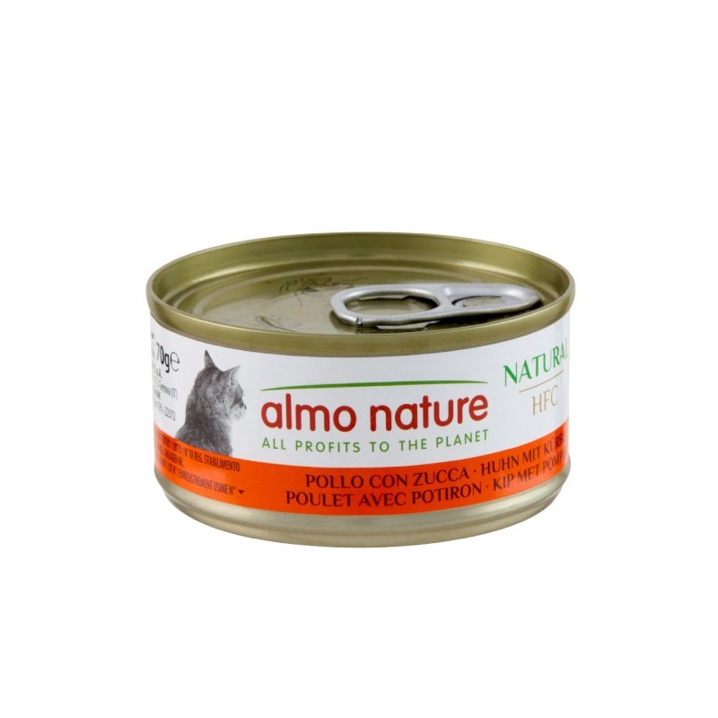 Almo Nature HFC Natural, Alimento Umido per Gatti - Pollo con Zucca - Lattina da 70 g