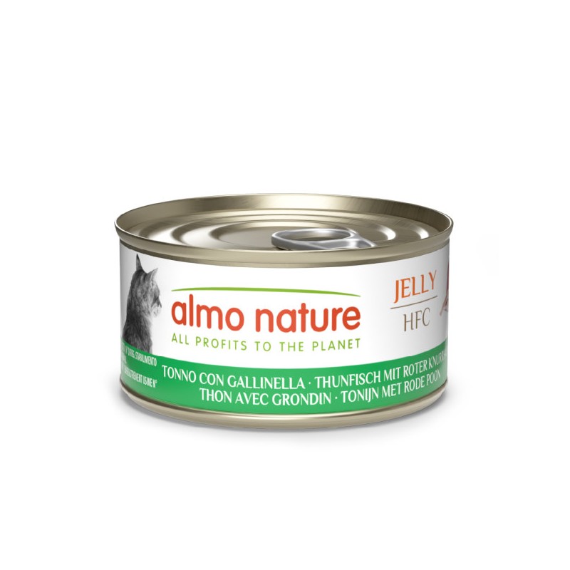 Almo Nature HFC Jelly, Alimento Umido per Gatti - Tonno con Gallinella - Lattina da 70 g