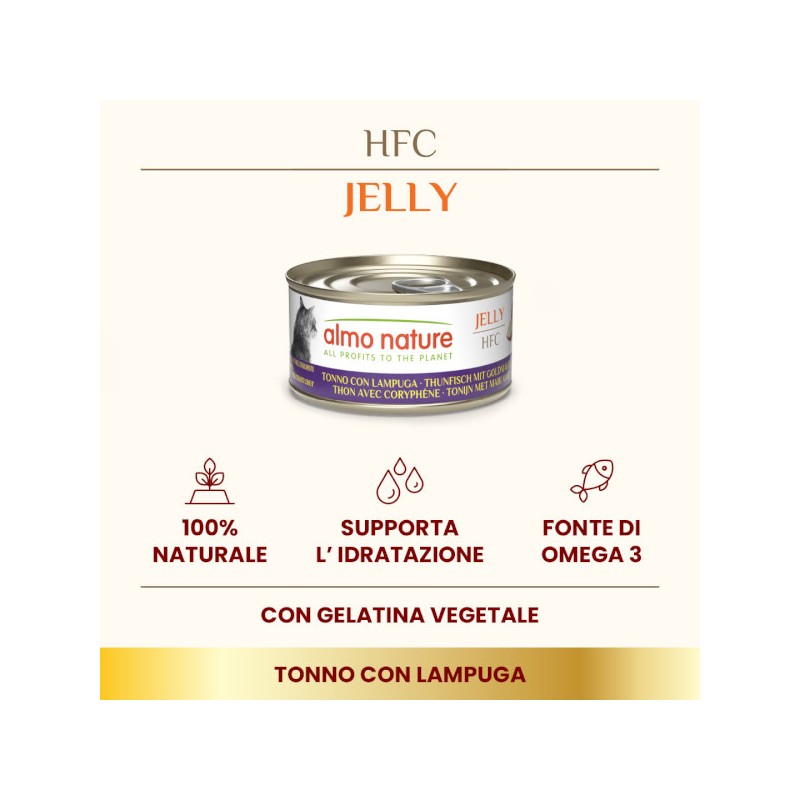 Almo Nature HFC Jelly, Alimento Umido per Gatti - Tonno con Lampuga - Lattina da 70 g
