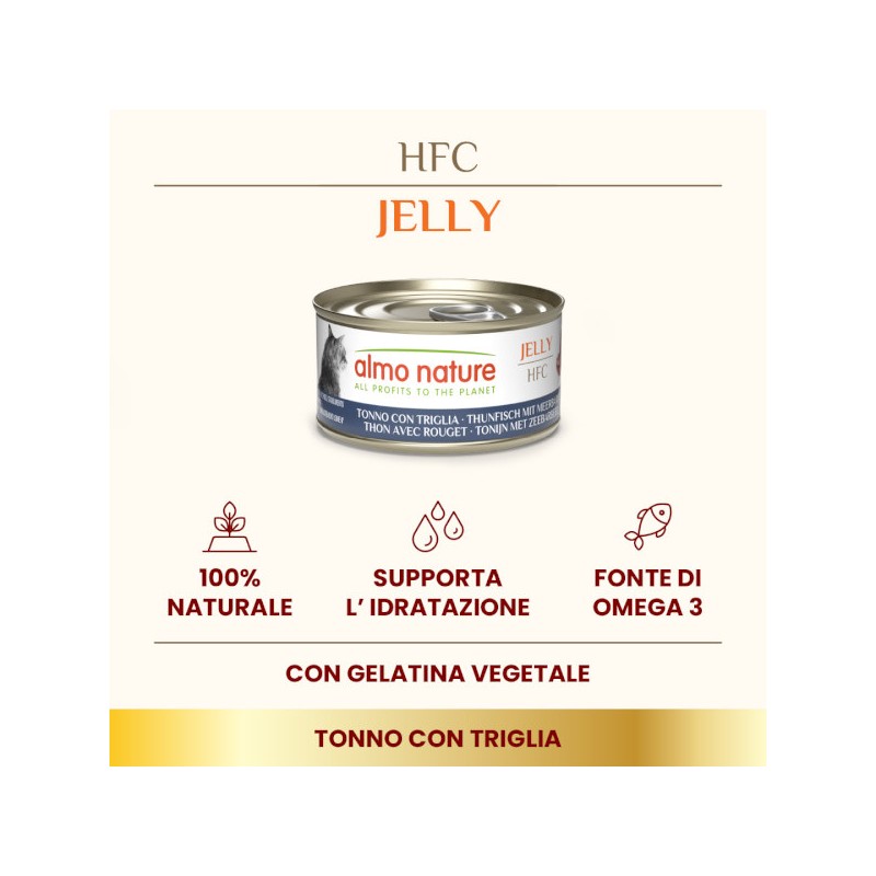 Almo Nature HFC Jelly, Alimento Umido per Gatti - Tonno con Triglia - Lattina da 70 g