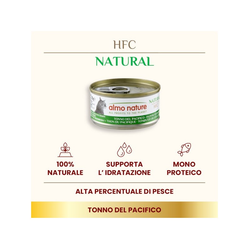 Almo Nature HFC Natural, Alimento Umido per Gatti - Tonno del Pacifico - Lattina da 70 g