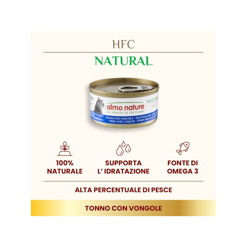 Almo Nature HFC Natural, Alimento Umido per Gatti - Tonno con Vongole - Lattina da 70 g