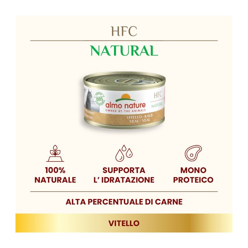 Almo Nature HFC Natural, Alimento Umido per Gatti - Vitello - Lattina da 70 g