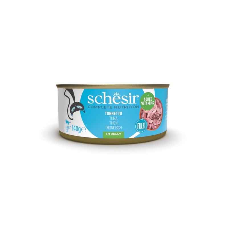A differenza di altri prodotti completi, Schesir garantisce autenticità con filetti di tonno cotti a vapore e accuratamente selezionati in gelatina.