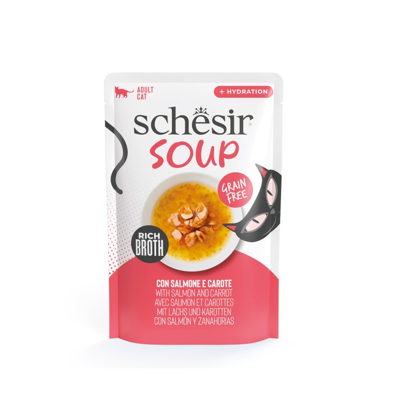 Schesir Soup Alimento Umido per gatti Salmone e carote 40g busta