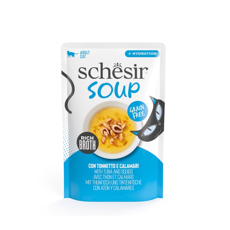 Schesir Soup Alimento Umido per gatti Tonnetto e calamari 40g busta