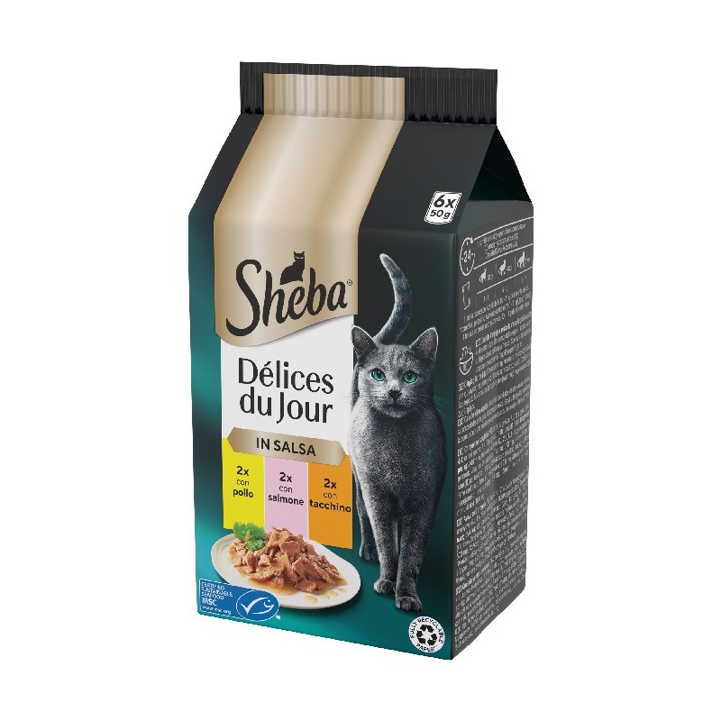SHEBA DU JOUR POLLO SALMONE TACCHINO SALSA 6X50 GR