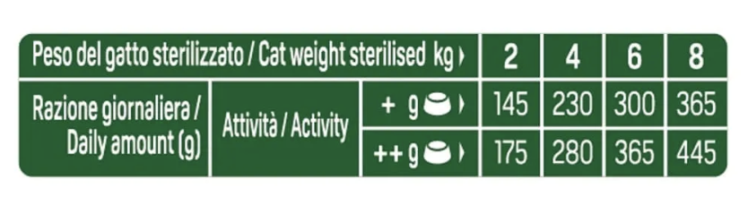 Alimento completo ed equilibrato per gatti adulti sterilizzati da 1 anno d’età.