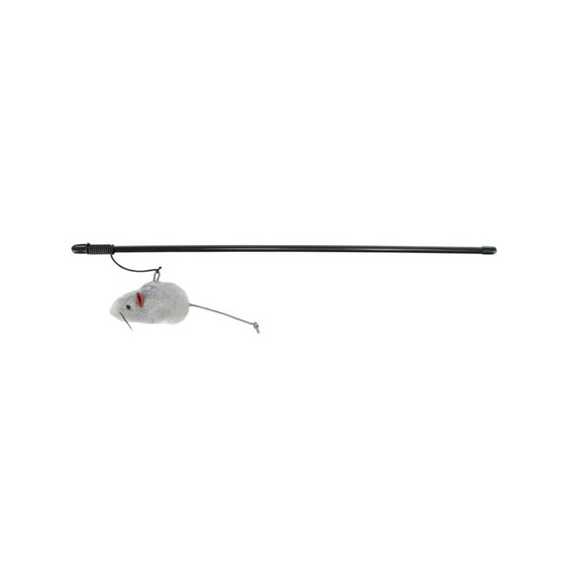 Gioco a forma di canna da pesca, con topo in peluche appeso ad un elastico con occhi e orecchie in feltro. Gioco ideale per far divertire il vostro animale.