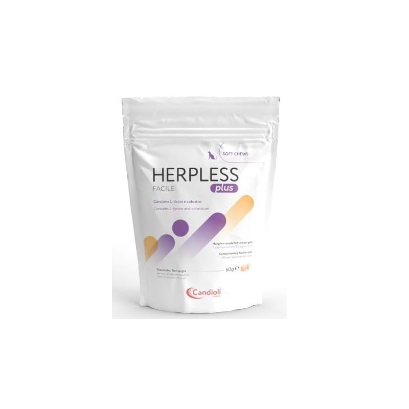 Herpless facile fornisce un elevato livello di L-lisina (500 mg/ bocconcino), che è un inibitore competitivo dell’aminoacido L-arginina, che interviene nel processo di sintesi delle proteine dei virus.