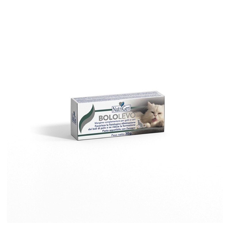 BOLOLEVO favorisce la fisiologica eliminazione dei boli di pelo che si creano a seguito della ingestione di pelo, durante le quotidiane operazioni di pulizia nel gatto, e ne riduce la formazione contribuendo alla normale funzione intestinale ed alla regolare formazione di feci. L’utilizzo quotidiano facilita l’eliminazione di tricobenzoari (boli di pelo) già formati e contribuisce alla eliminazione di ossa o materiali estranei ingeriti. BOLOLEVO è consigliato per tutti i tipi di gatti ed anche per cani nel periodo di muta. BOLOLEVO contiene Zenzero estratto.