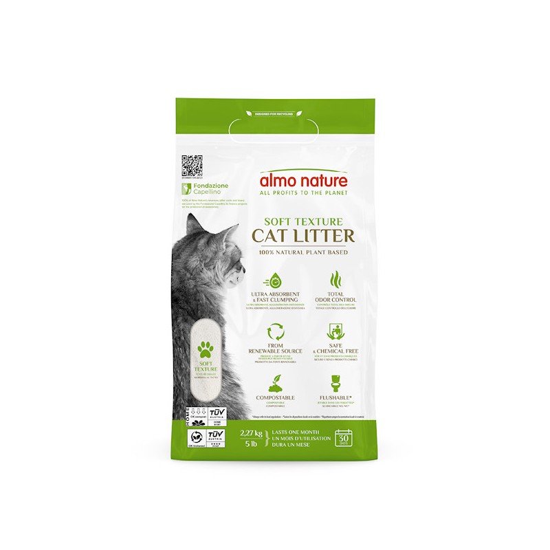 Con il suo sacchetto piccolo, compatto e leggero da 2,27kg, Almo Nature CatLitter è molto efficiente e dura fino a quattro settimane riducendo al minimo lo spreco di prodotto.