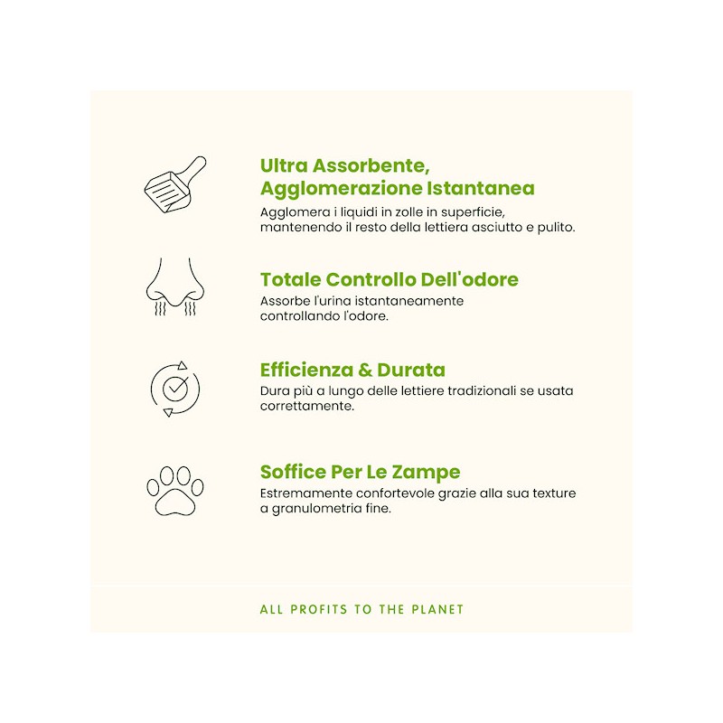 L’urina si agglomera istantaneamente neutralizzando la diffusione di cattivi odori.