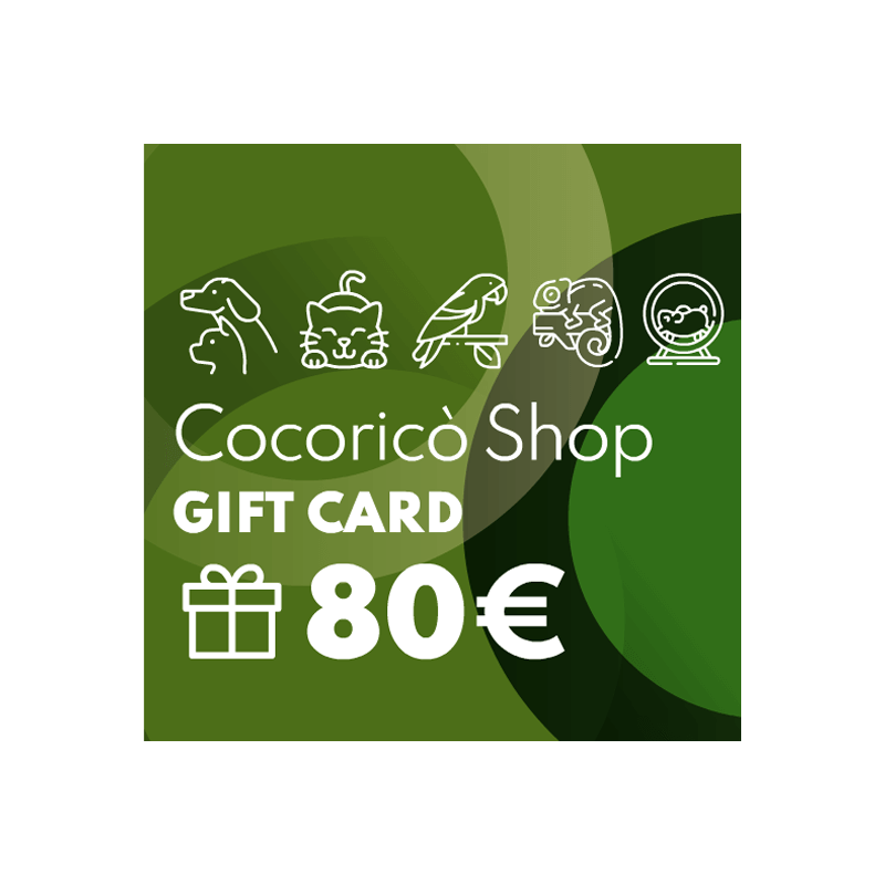 Buono Regalo del valore di 80.00€, un regalo per chi ama gli animali! Con i Buoni Regalo CocoricoShop puoi donare a parenti, amiche ed amici la possibilità di acquistare prodotti di qualità. Sul nostro shop hai infatti accesso a una gamma completa di prodotti per i tuoi amici animali!