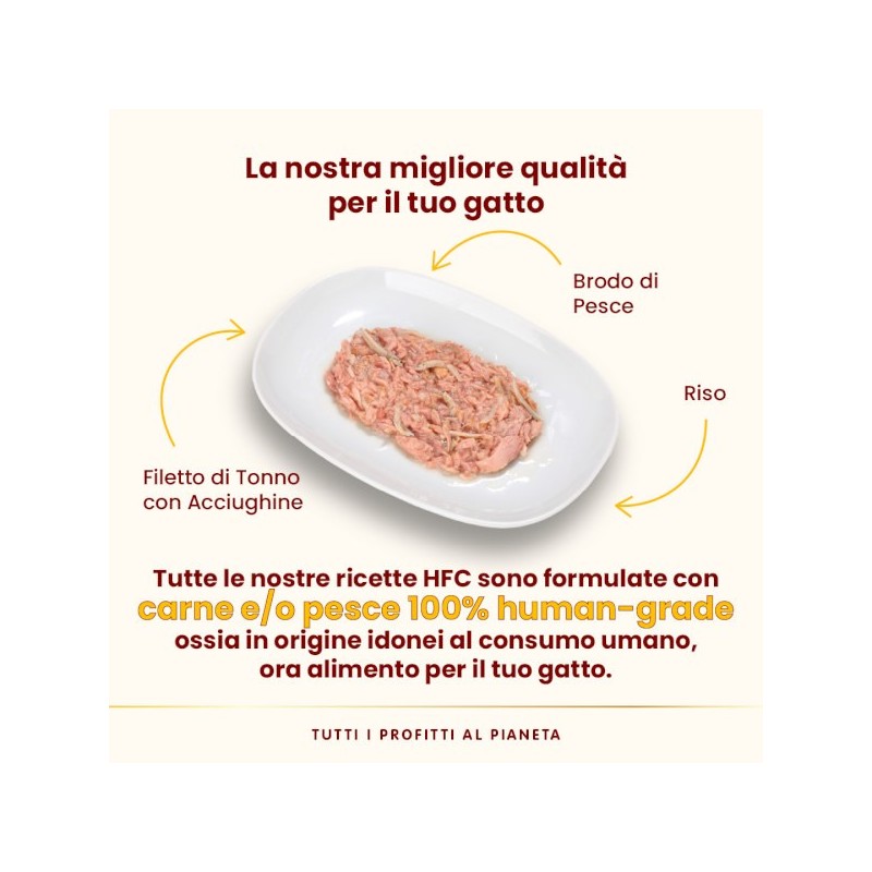 Filetto di tonno 50%, Brodo di tonno 44%, Acciughine 5%, (Encrasicholina heteroloba), Riso 1%