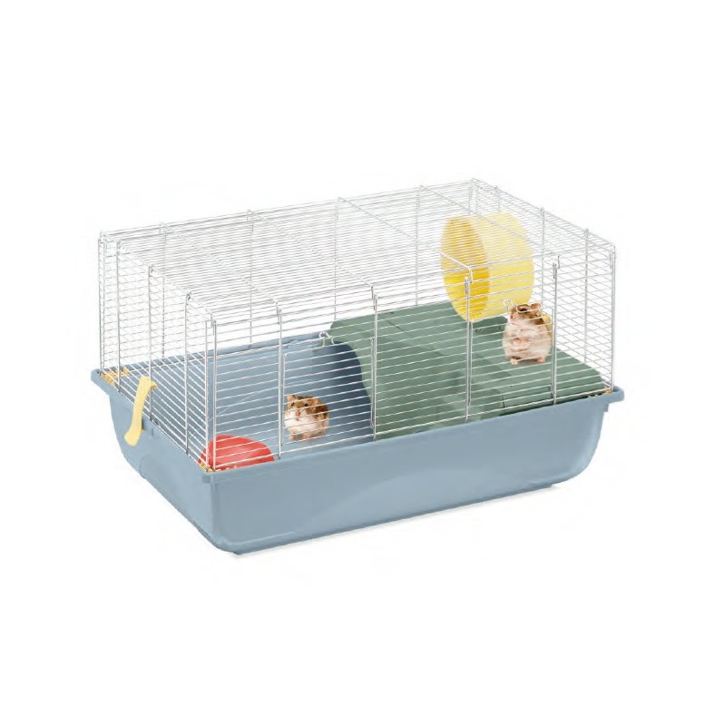 La struttura in rete metallica dispone di due aperture frontali con gancio di sicurezza che ti permettono di sganciare/agganciare il fondo dalla rete, un ripiano in plastica collegato al fondo con una scaletta, permette al tuo roditore di avere più spazio per il suo divertimento e relax.